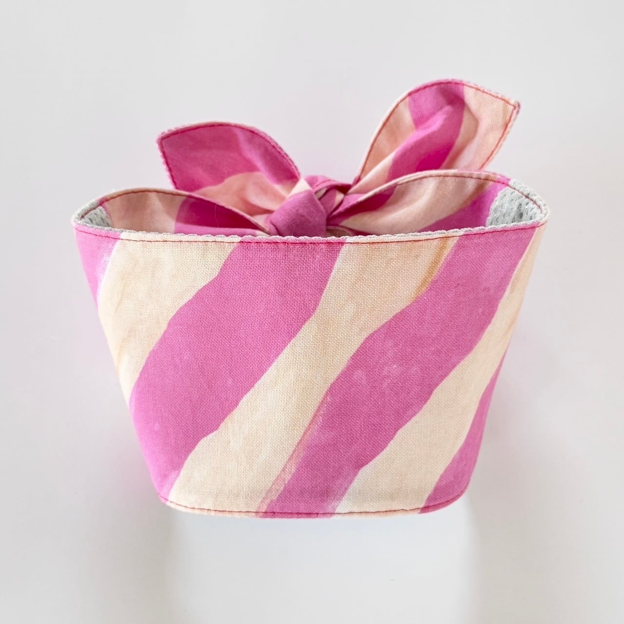 夏らしい鮮やかなピンクとやわらかなコーラルピンクが印象的なストライプデザイン。